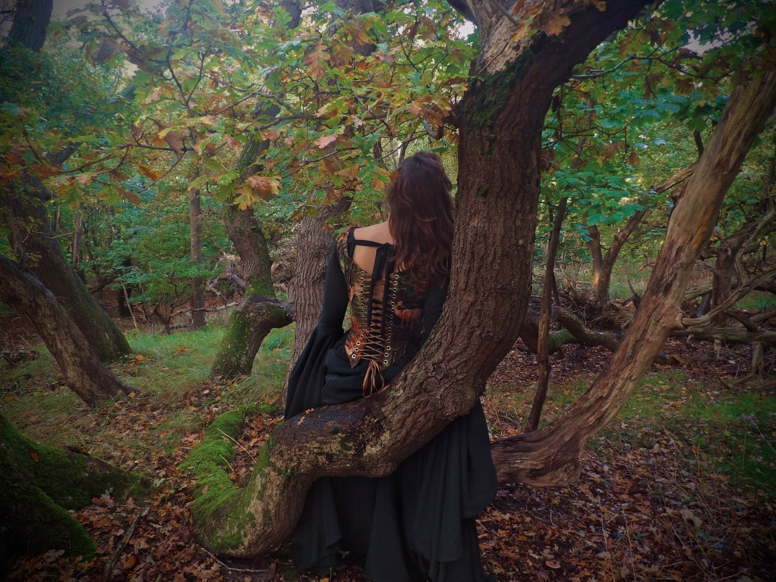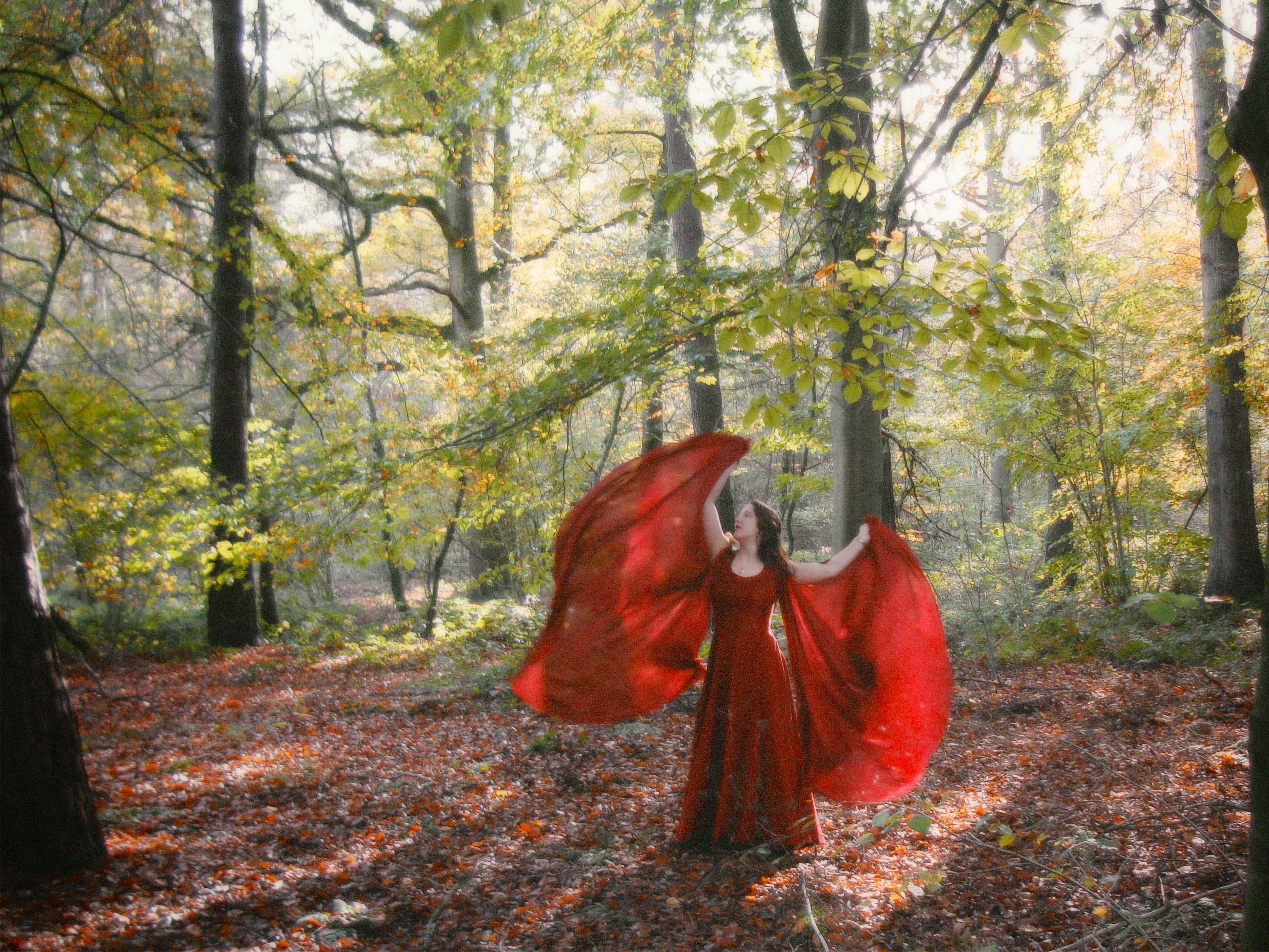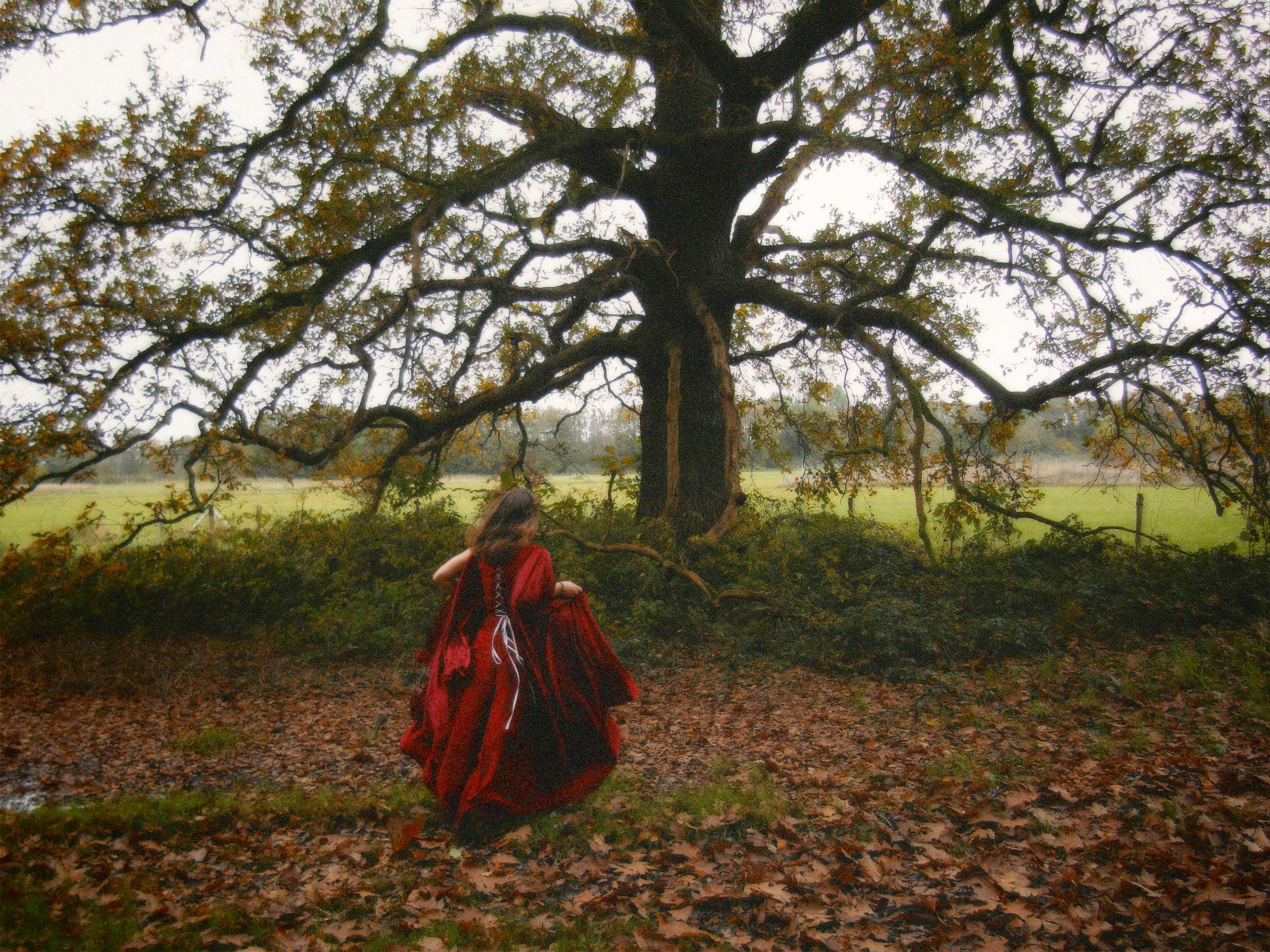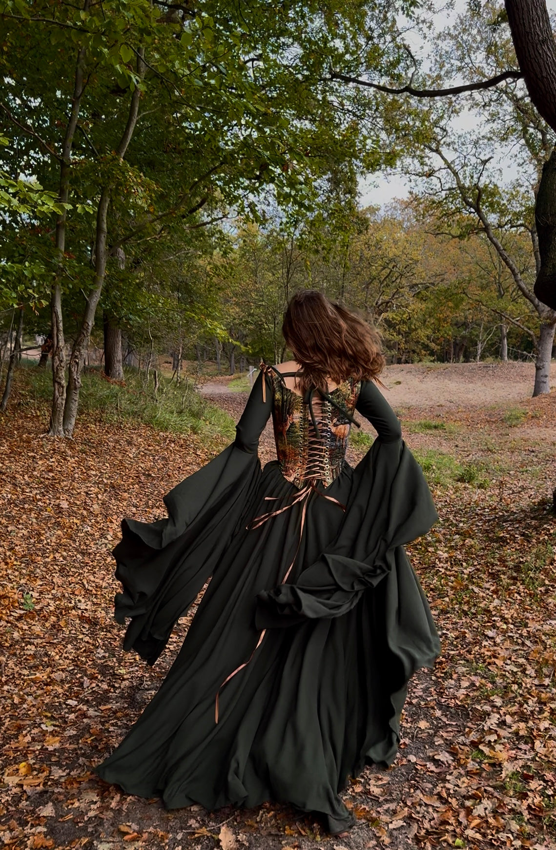 Een dramatisch draperende jurk gemaakt om te verdwijnen in de herfstkleuren. Lees hier meer