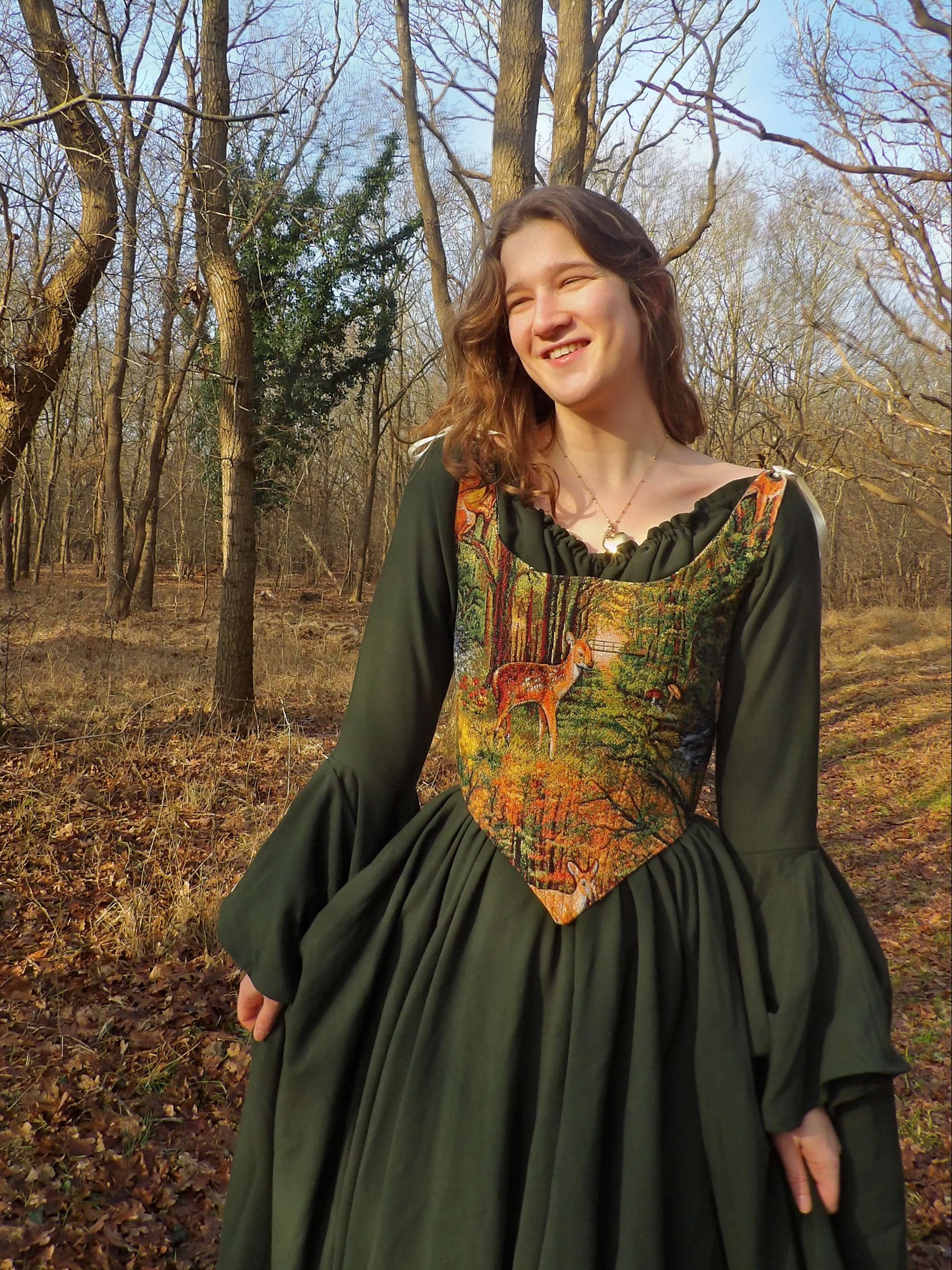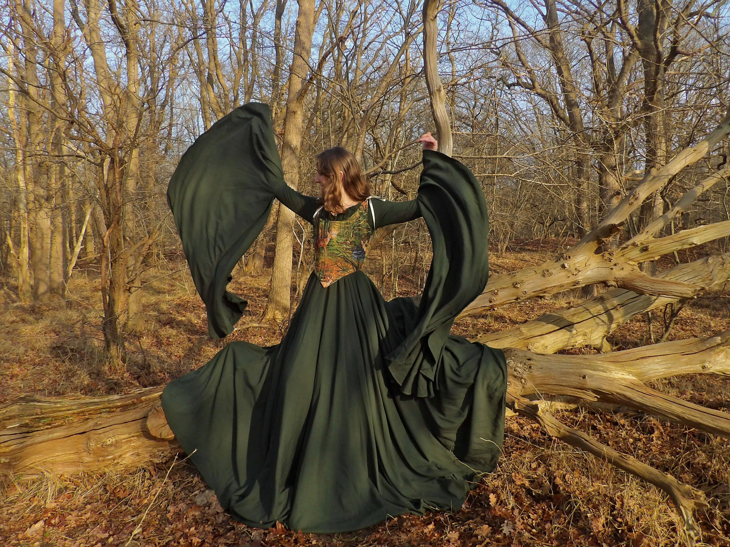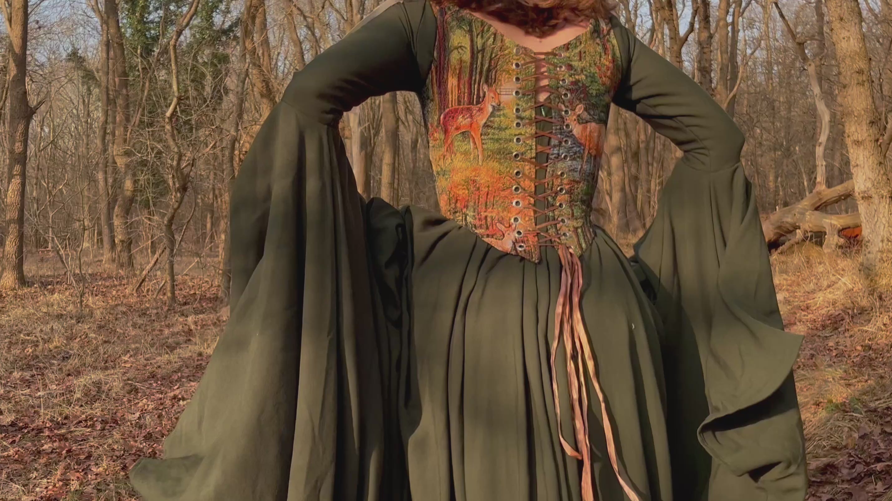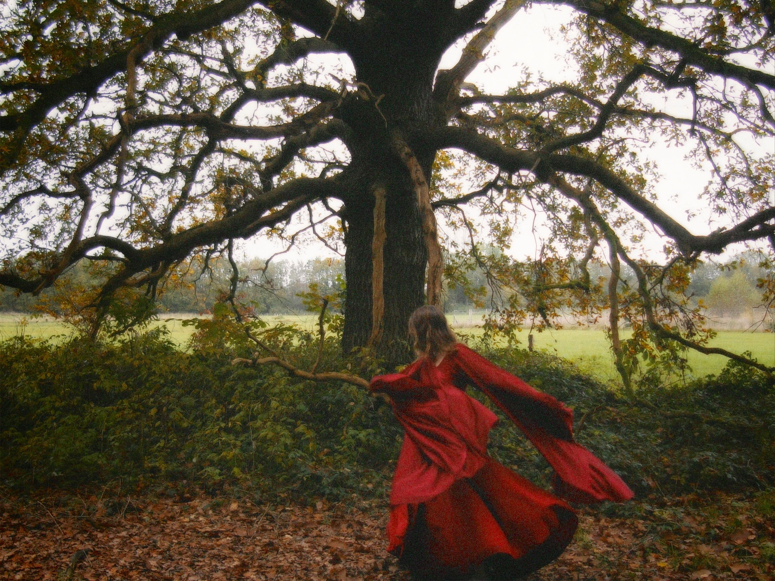 Een dramatisch draperende jurk gemaakt om te verdwijnen in de herfstkleuren. Lees hier meer